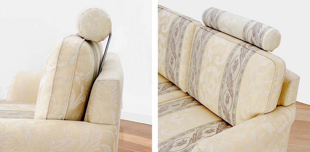 ソファの背クッションに差し込むだけで簡単に設置できハイバックとしてお使いいただける別売のヘッドレストです。既にお使いのソファにも特別の取り付け作業なしに設置することができ、取り付け位置の移動も簡単です。カバーリング仕様でカバーのみの付け替えも可能です。(※対応製品は、「HIROSHIMA」「地中海ロイヤル」「地中海」シリーズの中で下記製品が対応します。)