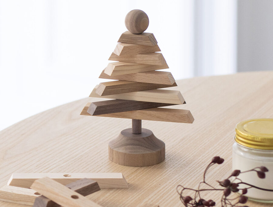 会期中、家具を製作する際に出る端材を使って木製のツリーを作るワークショップも開催いたします。木の仕上げ削りとオイル塗装を体験できます。