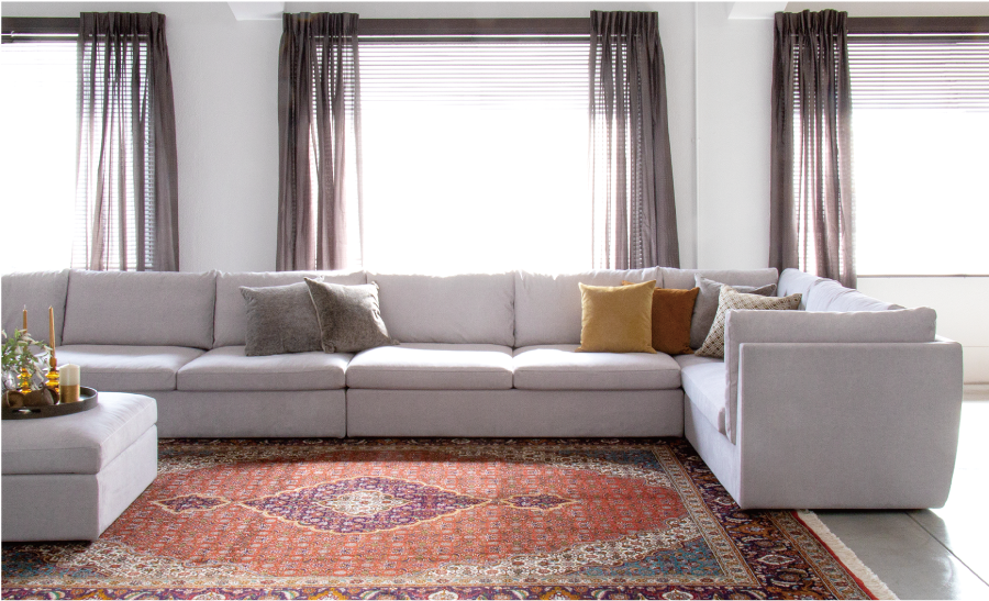 美しい色合いの織り柄が魅力のペルシャ絨毯と組み合わせて、ラグジュアリーな空間を彩ります。