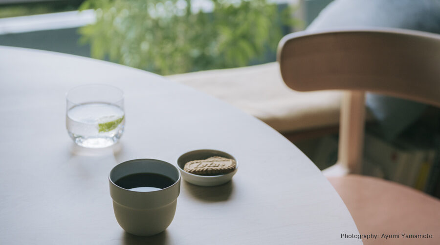 春に発表したセシリエ・マンツ氏の新作「EN」をテーマにしたこのカフェでは、「EN」の家具に座りながら、同じくセシリエ氏デザインの有田焼のテーブルウェア「CMA CLAY」で、本企画オリジナルコーヒーと、デンマークの伝統的なお菓子「クランセケーフィンガー」を楽しんでいただけます。