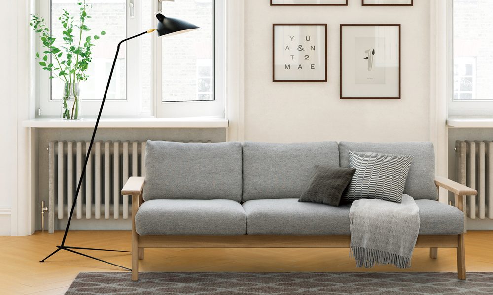 A sofa made by Maruni should obviously involve wood in the structure. I decided that apart from the loose cushions the frame should be completely in wood except for the mesh below the cushions where a little extra comfort is needed. The sofa gets it’s dynamic appearance from the side structures where the armrest makes bridges across the angled front and back legs, which are held together by the angled seat rail. The sitting comfort is a result of carefully consider seat and backrest angles and seat height. The combination of selected fabric or leather with the ash or oak wood structures gives the sofa a visual freshness.