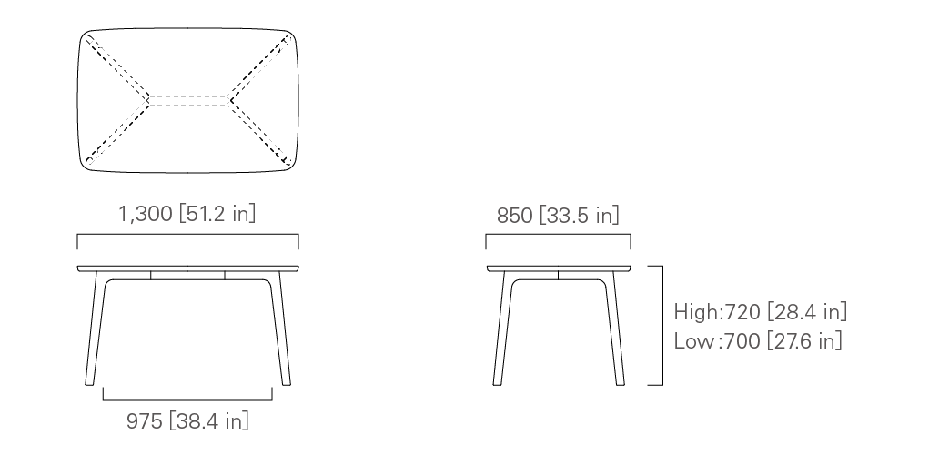 | Dimensions | Low: W1300×D850×H700 (mm) High: W1300×D850×H720 (mm) |