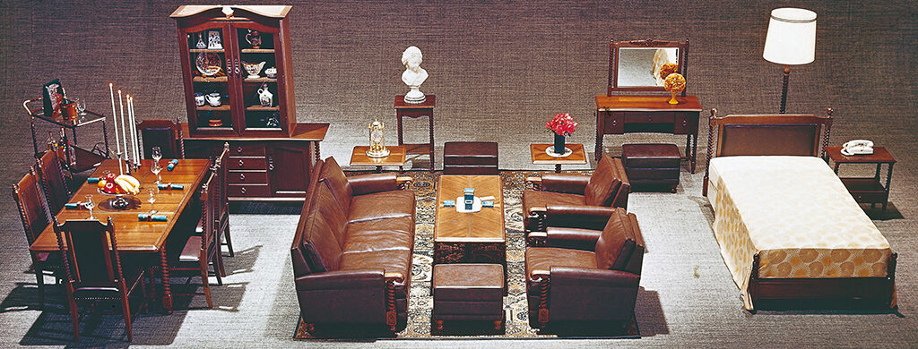 エジンバラというシリーズは1967年に発売したソファです。特徴的な脚のらせん柱や菊花模様の彫刻がとても印象的です。