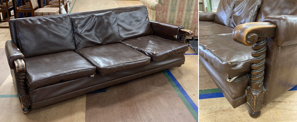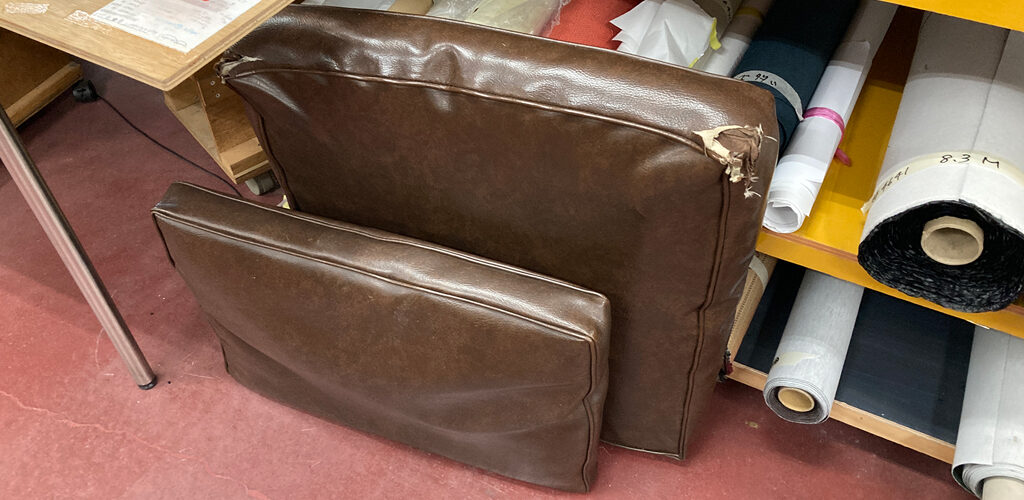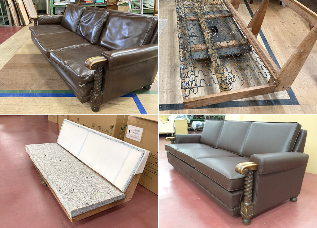 たまたまかもしれませんが、こちらのソファの修理を依頼いただくのは若い方が多く、「このデザインがカッコいいので修理して使いたい」とお話しいただくことが多いです。