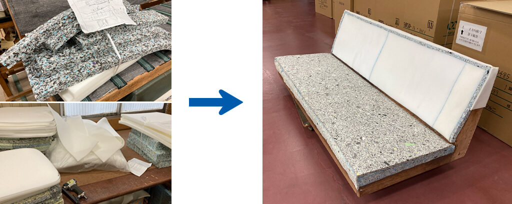 へたりやくたびれていた箇所が、張替えることによってきれいに生まれ変わりました。