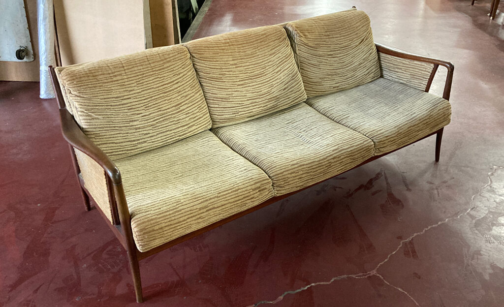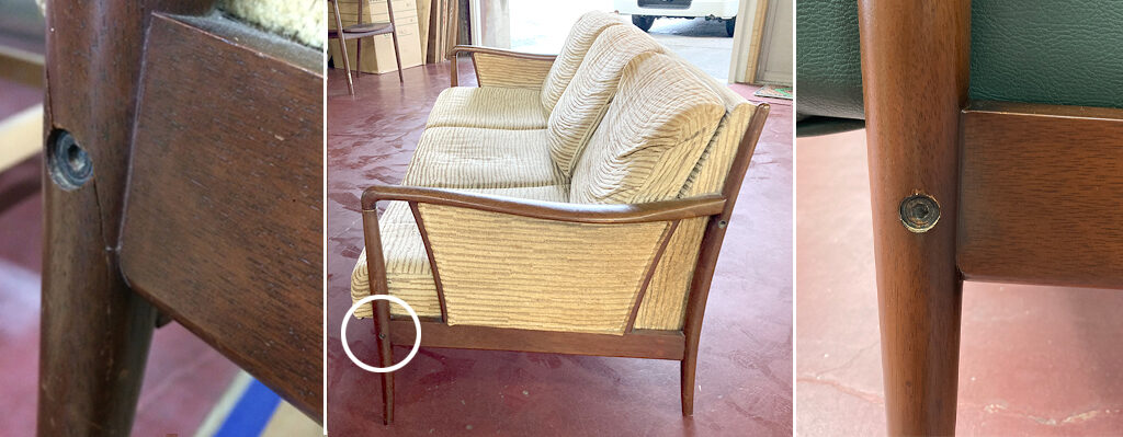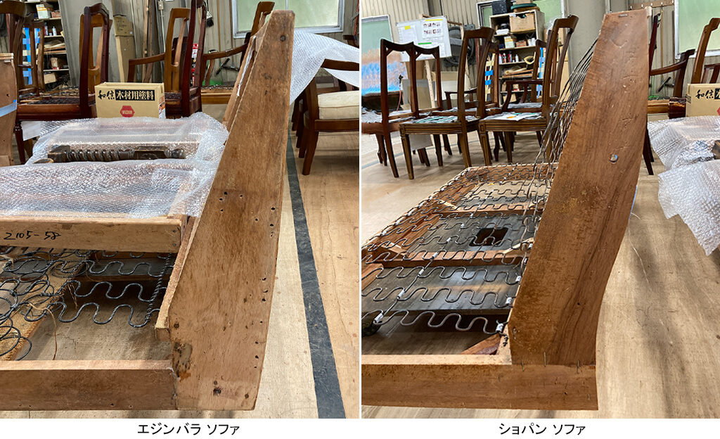 工場では、同時進行で様々なソファが修理されています。見比べてみるとそれぞれ形が異なることが分かります。