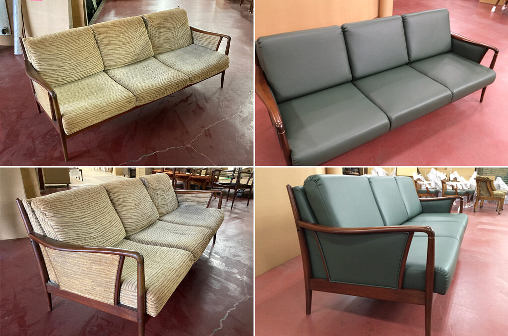 元々布地のソファをご利用いただいておりましたが、メンテナンスがしやすいようにという理由で合成皮革の生地をお選びいただきました。