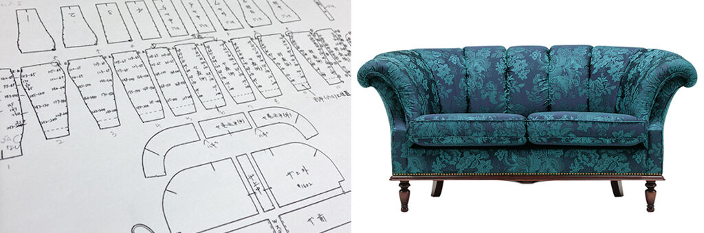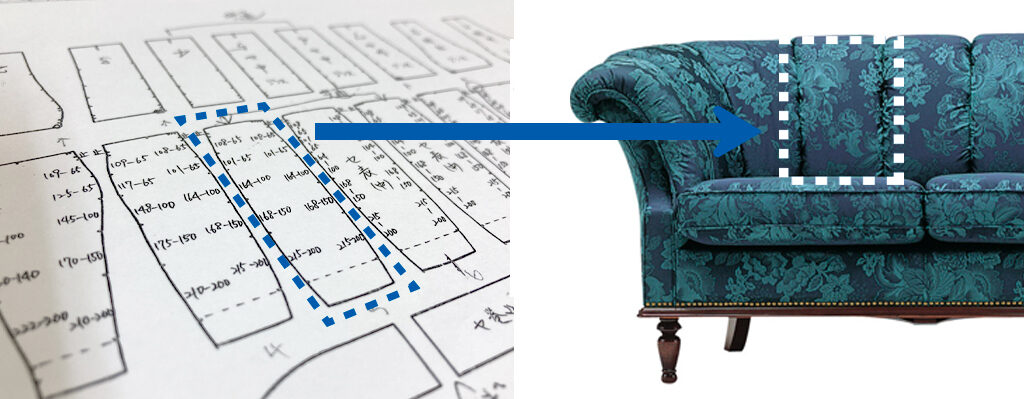 背もたれをよく見てみると生地と生地の繋ぎ目にあえてシワを作るような縫製がされています。このシワがあることによって平面的にならず表情豊かな背もたれを演出しています。