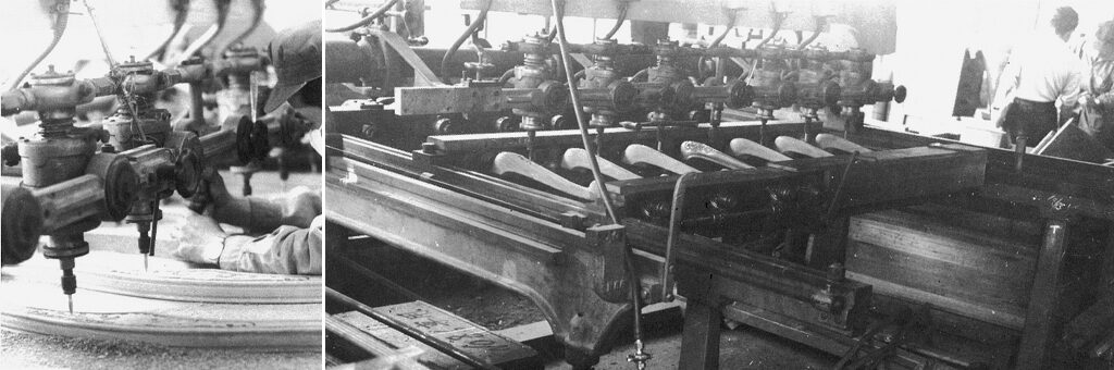 この彫刻部分、一見すると人の手で一つ一つ彫られたのではないか、と思われるかもしれませんが、実は人の手で彫っているわけではなく「カービングマシン」という機械で彫っています。