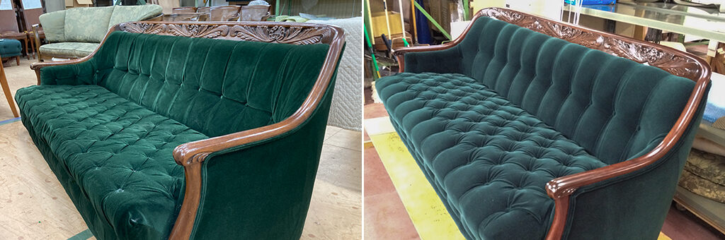 修理をする際には中身のウレタンも交換するため、ソファの背もたれもふっくらとしました。
