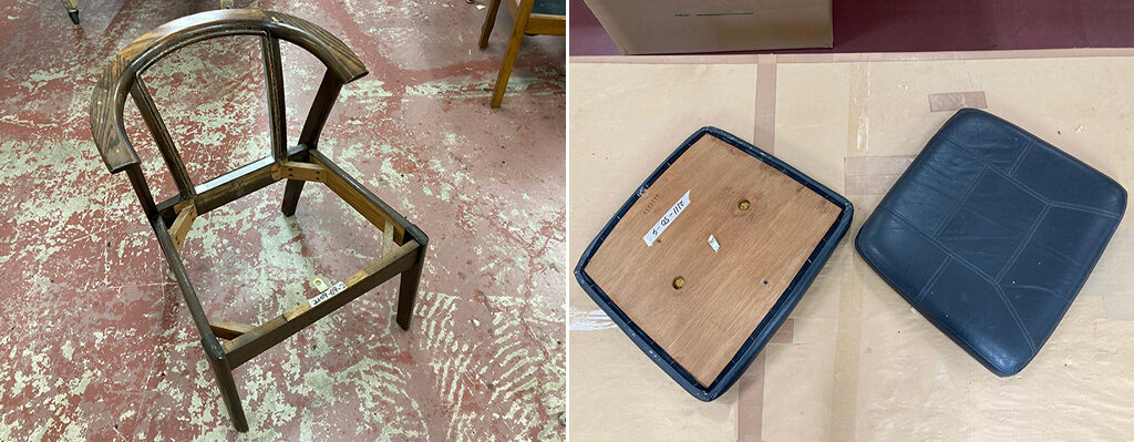 塗装については、家具の状態やお客様のお好みなどいろいろありますが、私の個人的な感覚としては「経年変化を感じられる雰囲気のいい塗装の剥がれ方」と「張地などがきれいになることで傷が目立ち過ぎてしまう剥がれ方」があるように思います。