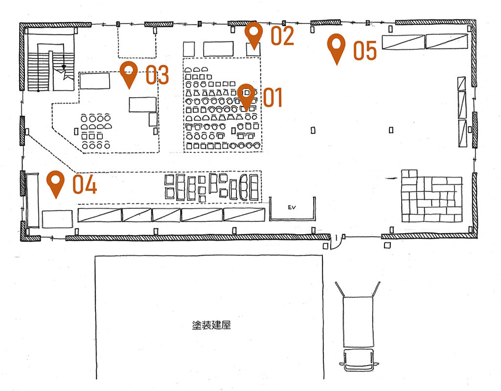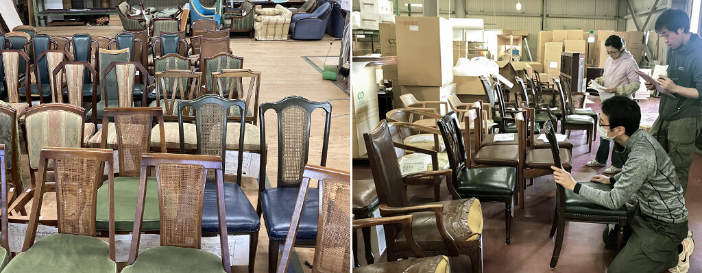 工場の一角にはリノベーションを待つ家具が保管されており、これから分解・修繕し、蘇らせていきます。どのように新たな価値が創造されるのか、そしてどのような方にご利用いただくのか、見ていると想像が膨らんでいく、今後がとても楽しみなスペースです。