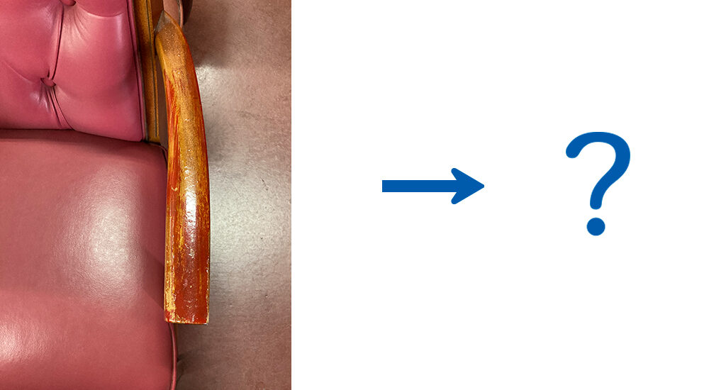 以前も何度か同じようなご依頼をいただいたことがありますが、今回のご依頼の一番難しい点は、赤い塗装を剥がしてみないと元の木の色がどのような状態かわからないことでした。場合によっては、同じ椅子でも一脚ずつ木部の色が大きく異なる可能性があります。