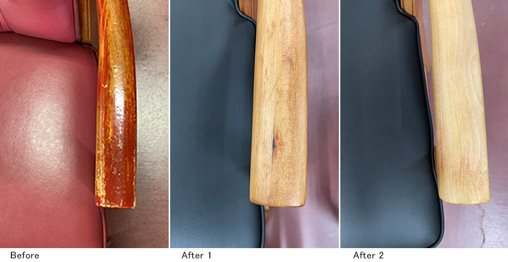 その際に「生地だけでなく木部の塗装を剥がし、木の色そのままにしたい」というご要望もいただきました。