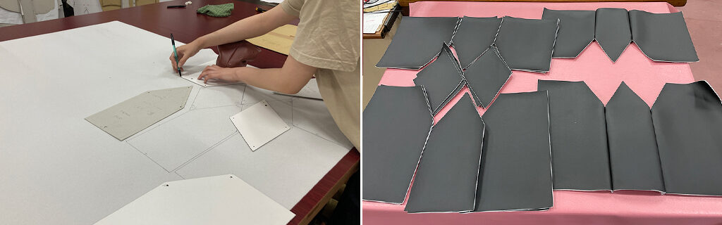 通常の背もたれでは1枚の型紙を使うことが多いですが、今回は5枚の型紙を使用します。