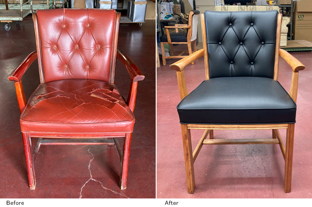お客様からは「元々両親が経営していた病院で使用していた椅子を、自宅でも使いたい。ただ赤だと少し印象が強すぎるので、イメージを変えたい」というご依頼でした。