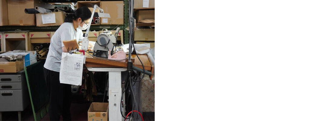 立って縫うタイプは作業台に傾斜が付いており、より早く生地を縫うことができるそうです。
