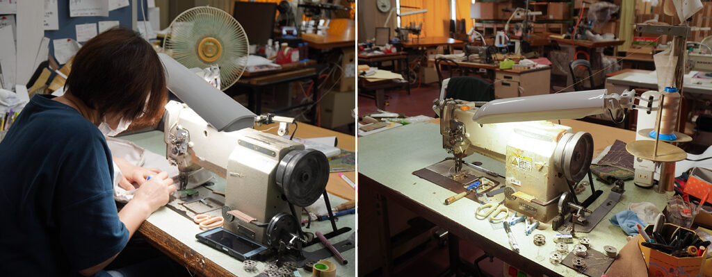 「こんなに古いミシンを使っていて恥ずかしいから撮らないで」とスタッフには言われましたが、私からするとこの使い込まれた古さがとても新鮮でカッコよく見えます。