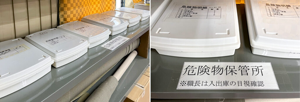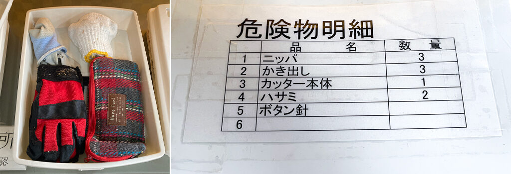 ※「危険物明細」や「カッターの刃を入れるケース」には、きちんと管理するために、社員一人一人の名前が明記されておりますが、掲載上、今回は伏せさせていただいております。