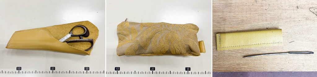 今回、安全管理の方法を伺っている際に、皆さんの道具箱を見せていただきました。 道具箱の中には、生地の端材で作ったハサミ入れや筆箱など、各自が工夫して作った道具入れが収められていました。