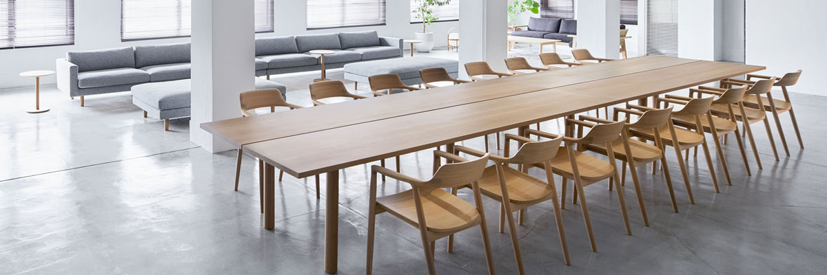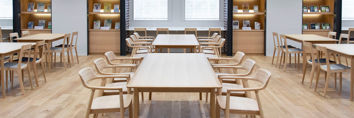 マルニ木工では、「工芸の工業化」をモットーに90年以上木工家具をつくり続けてきた経験を活かし、木工家具を通して、何気ない日常を美しく心豊かにする空間づくりをお手伝いします。レストラン・ホテル・オフィス・病院・公共施設等、法人のお客さま向けに、家具のご提案や特注・造作家具の製作も行っています。