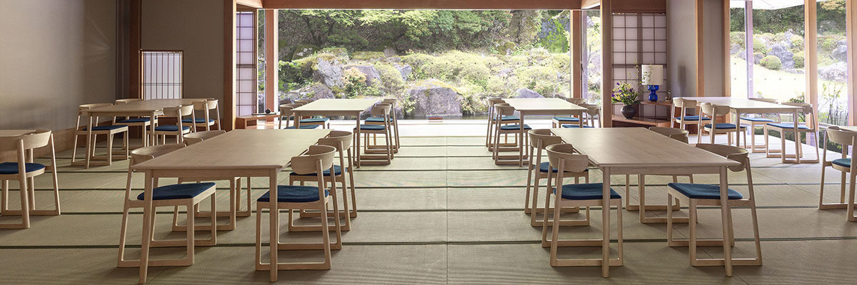 マルニ木工は、木という素材が持つ温もりと美しさを生かし、ワークプレイスやホテル、レストランなど、さまざまなホスピタリティ空間に快適さと落ち着きをもたらす提案を行っています。