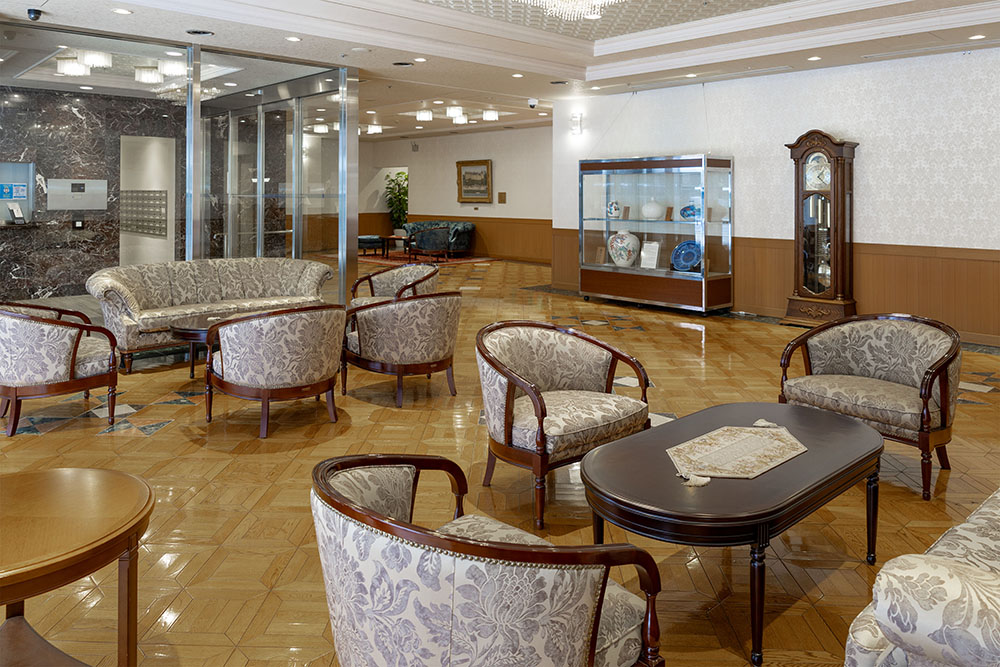 介護付有料老人ホーム「クラーチ・エレガンタ本郷」にて、施設内でも利用頻度の高いダイニングおよびエントランス空間における家具の修理・張替えを実施した事例です。