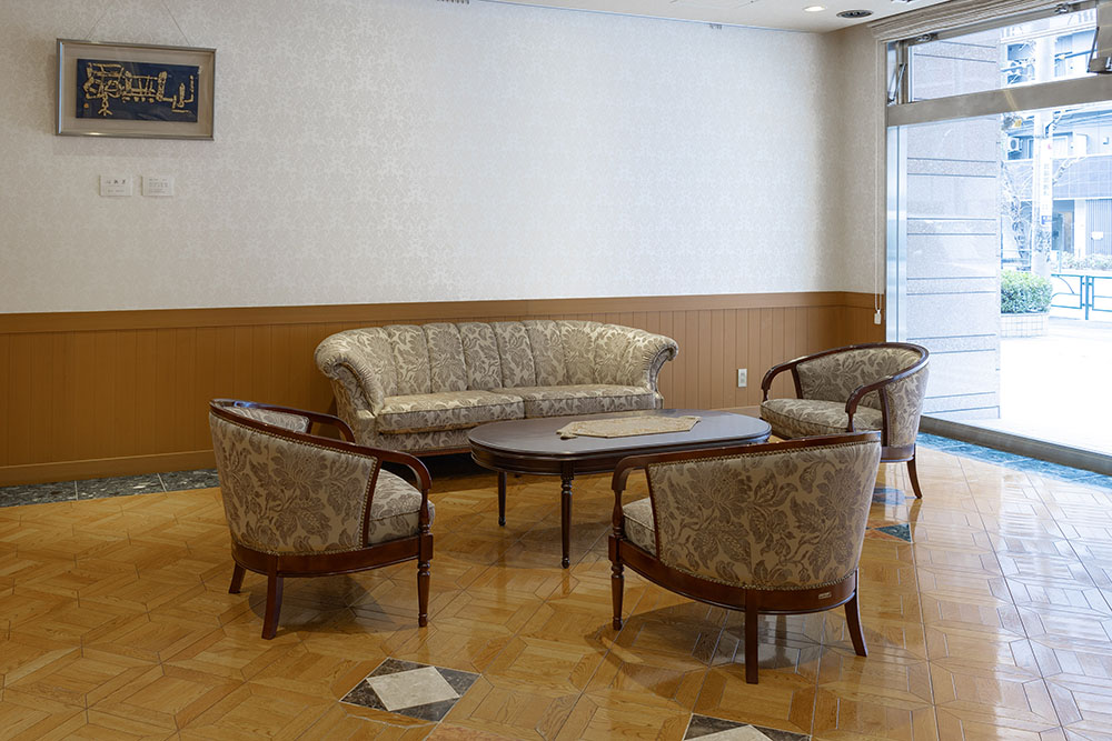 来訪者を迎え入れるエントランス空間では、ソファとチェアの張替、テーブルの塗装補修を実施しました。エントランスは施設利用者様がご家族や来訪者を迎える重要な場所であり、常に良好な状態が求められます。今回は、破損が顕在化する前の予防としてメンテナンスを対応しました。張地は既存生地が廃番のため、サンプルを複数用意し選定いただきました。空間の雰囲気を損なわないよう配慮しながら新たな張地へと更新しました。