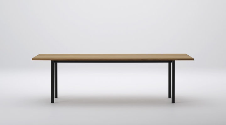 木本来の質感や風合いを感じられる、ナチュラルな無垢天板のダイニングテーブルです。使い込むにつれ味わいを増すこのテーブルは、それぞれ異なる表情の木目をもち自然の豊かさを実感いただけます。天板と脚組のバランスに工夫をこらしたシンプルなフォルムは、どの椅子を合わせても調和がとれます。天板には、厚さ30mmの無垢材を使用しております。 幅のサイズだけではなく、奥行きのサイズもお選びいただけるバリエーションをご用意しております。