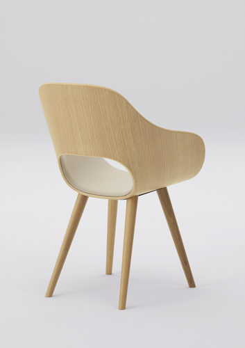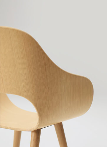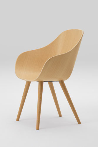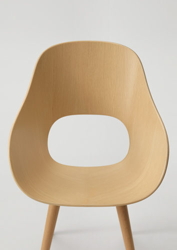 そして2018年、一枚の帯状の薄い板をぐるっと巻いて繋げたような、座るとからだがすっぽり包みこまれる感じが心地よいアームチェアを追加しました。