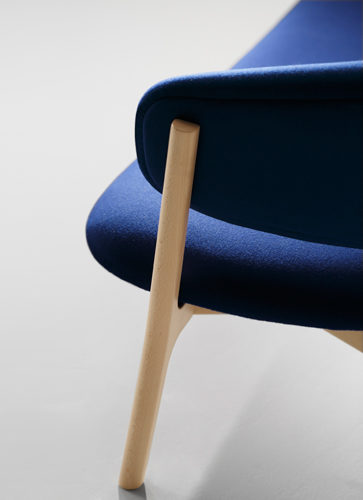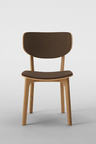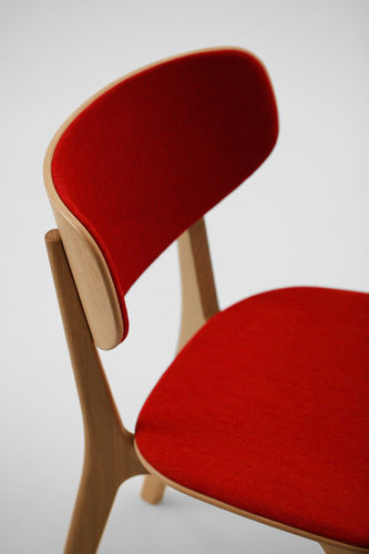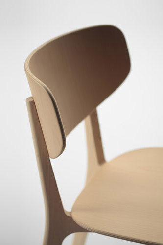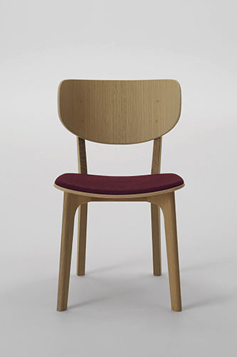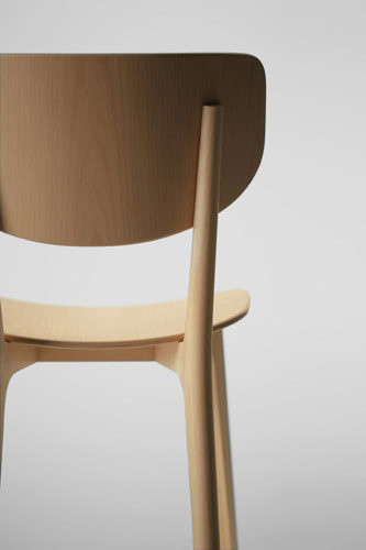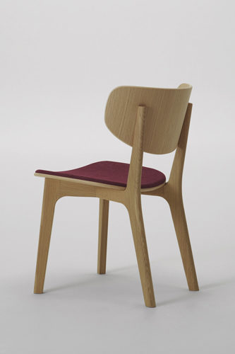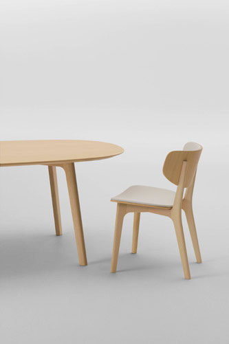 丸みのある背と座の椅子、その側に丸みのあるテーブル。とても相性がよく、しっくりきます。アウトラインの縁はやさしく丸められ、硬さがまるでありません。丸っこい大きな背板と背中を包み込むその心地良さが魅力。まっすぐに座っても斜めに座っても身体がすっぽりと収まる感じの背板なので、長い時間座っていても疲れません。実は、その曲げの曲率は座の外形とぴったり。椅子は後ろ姿に価値があるといわれていますが、このRoundish は後ろから見た姿が特に美しいデザインです。