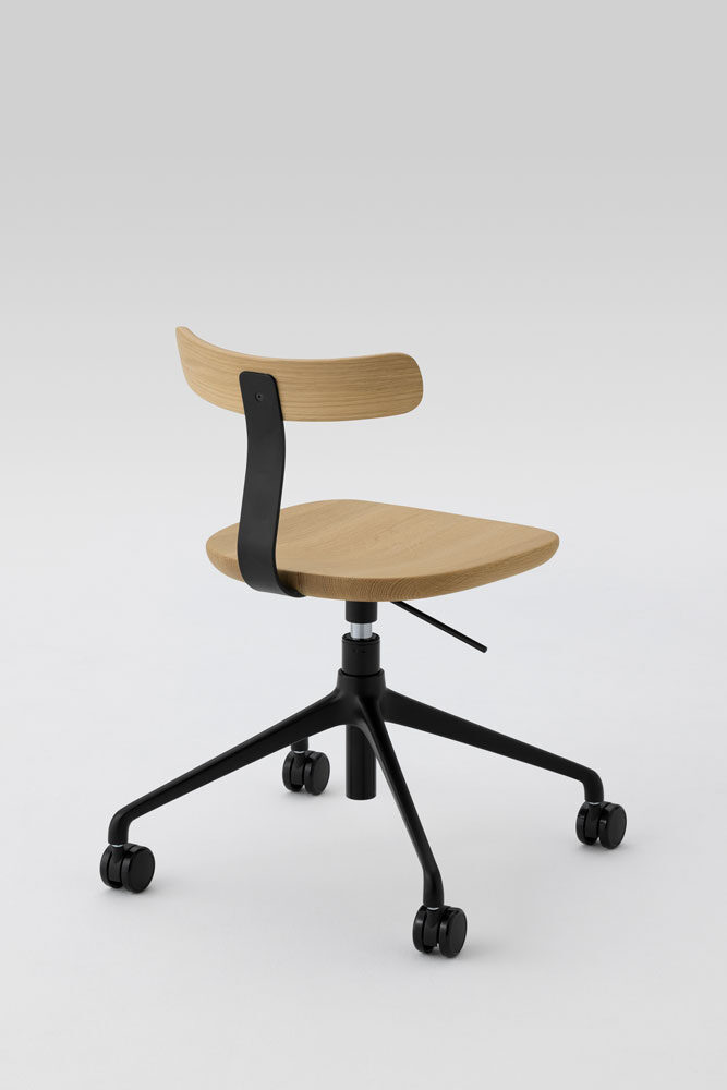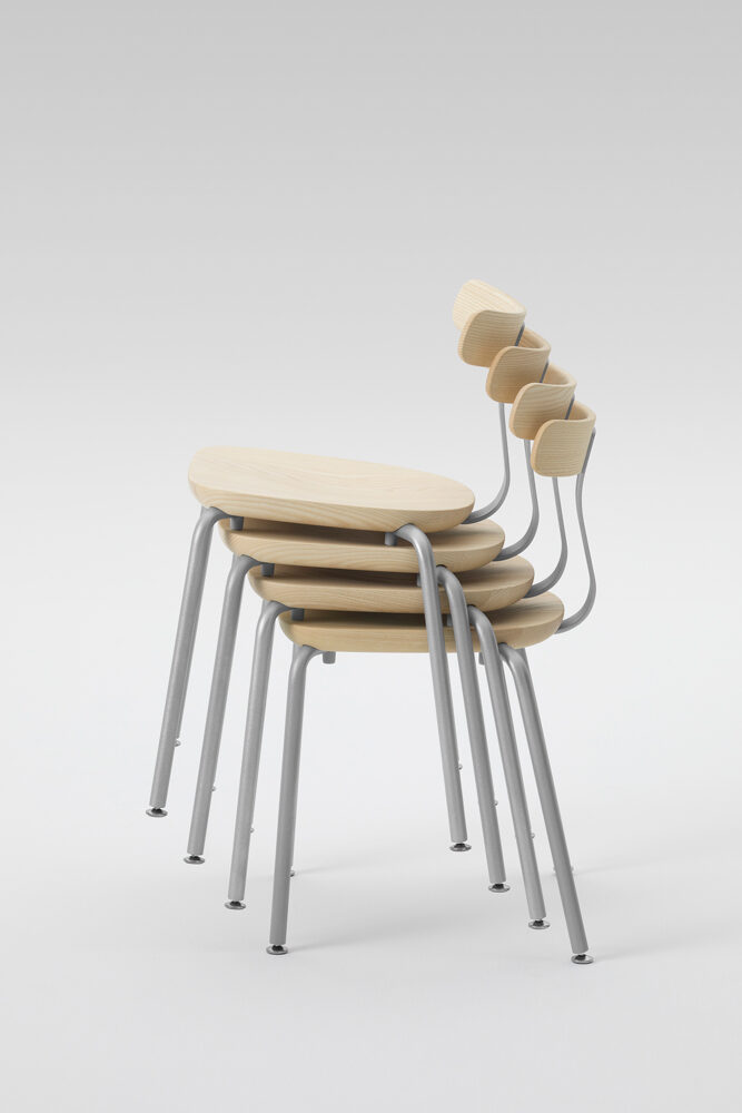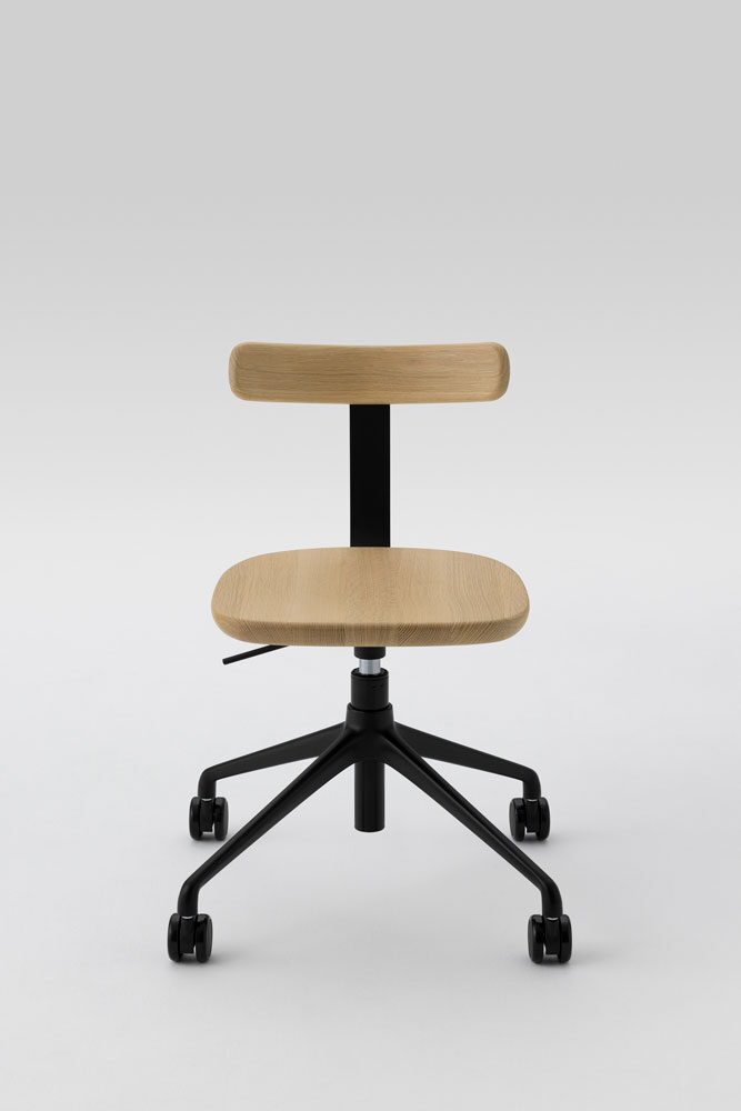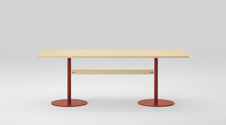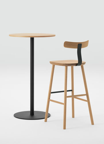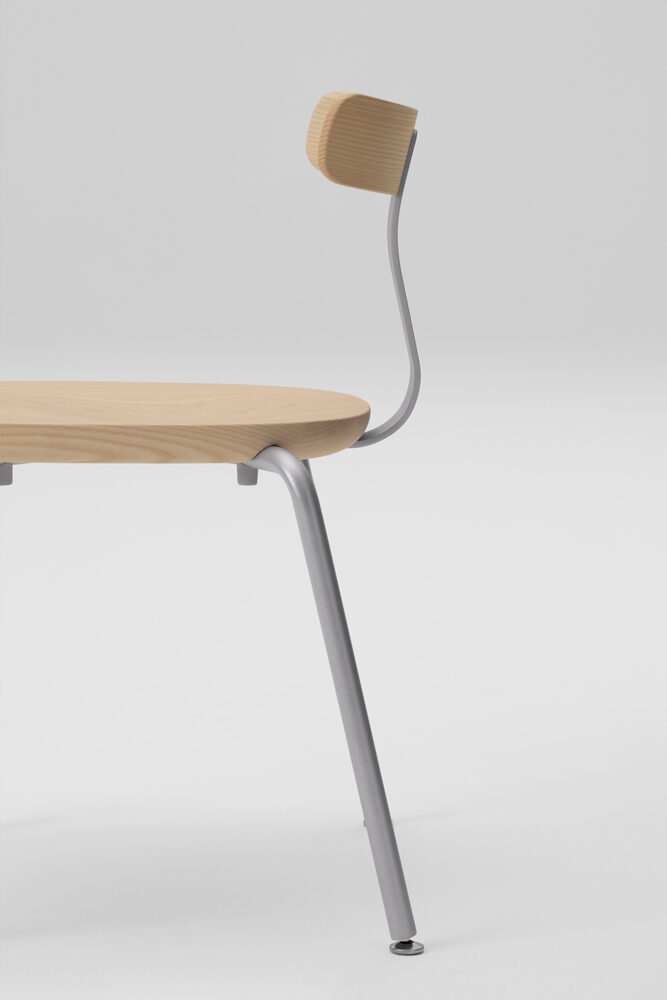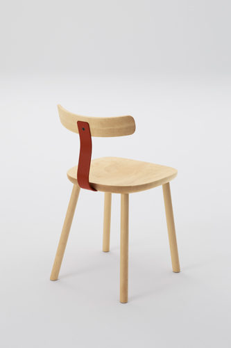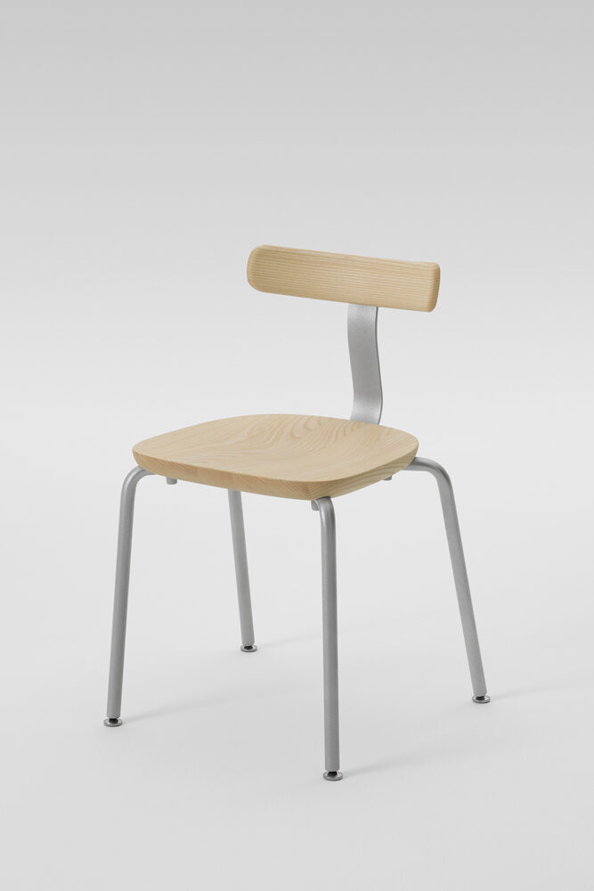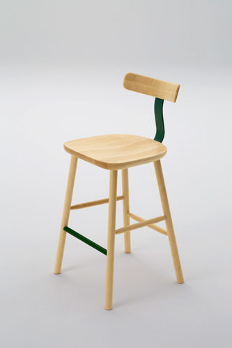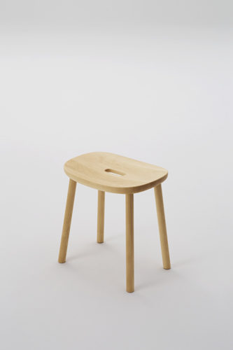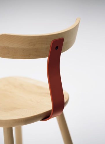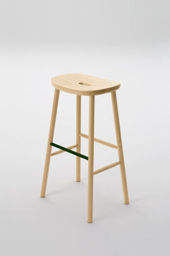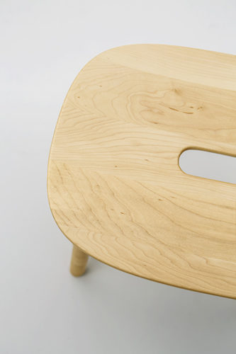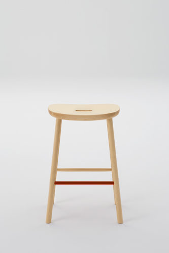 無垢材と色のついたスチールの素材のコントラストが新しさを与えるシリーズです。T1チェアは無垢のメープル材を3次元に削り出した座面と背もたれで出来ていて、弾力性のあるスチールでそれらを繋げる事により快適さを向上させています。O1スツールも3次元に削り出しており、座面の中心にある横長の穴は持ち運びの快適さを実現しています。親しみのあるタイポロジーが特徴的なフレンドリーなアイテムです。