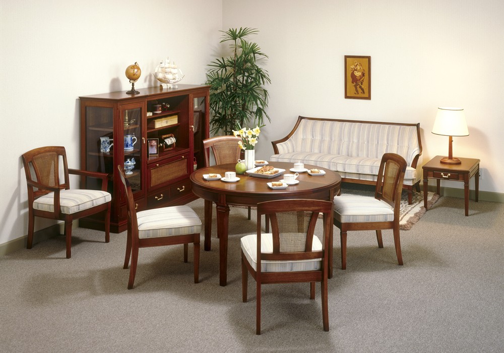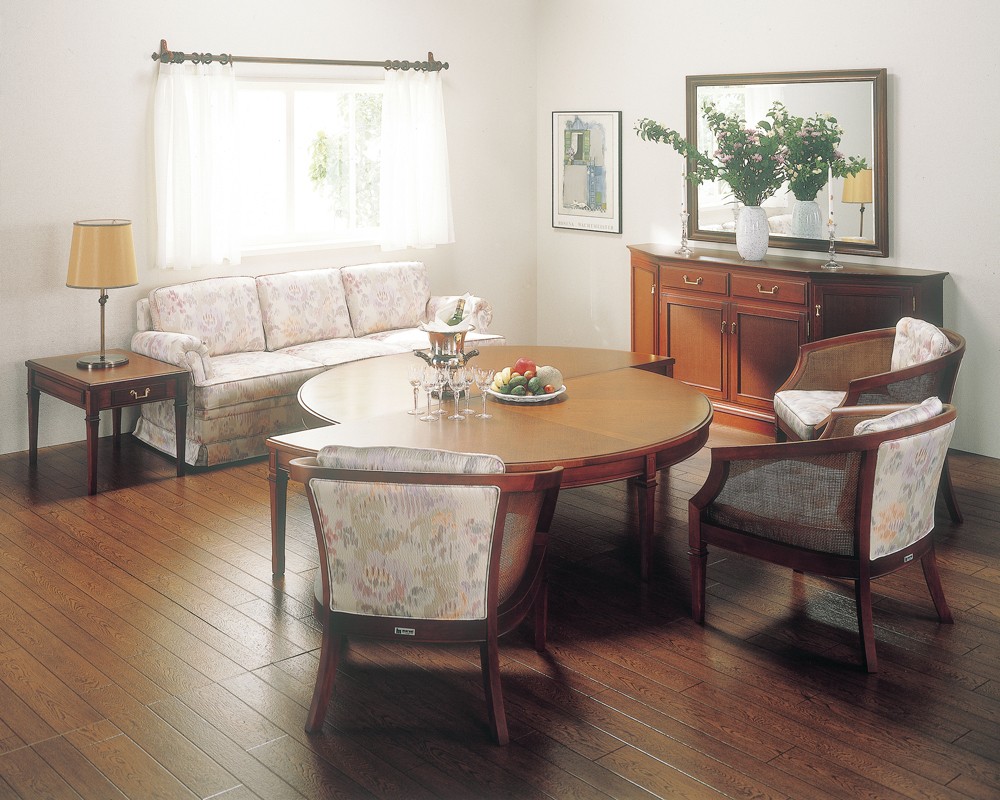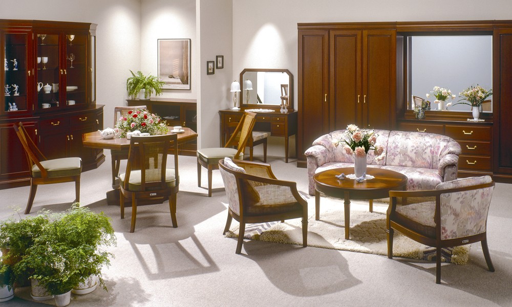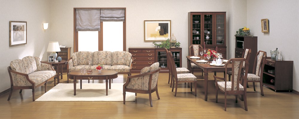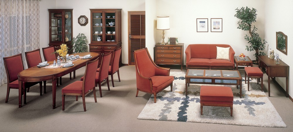 そうして誕生した地中海シリーズは、想像以上に高級家具市場に強いインパクトを与えたのです。暮らしの快適さが求められた時代に、リビング・ダイニングをトータルにコーディネートできる豊富なラインナップは、豊かさの象徴と映ったのかもしれません。新しい時代に応える、商品提案の始まりでした。