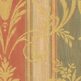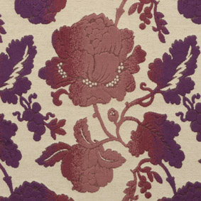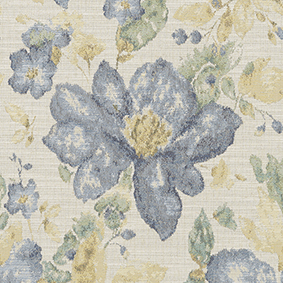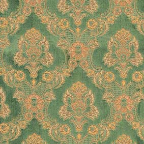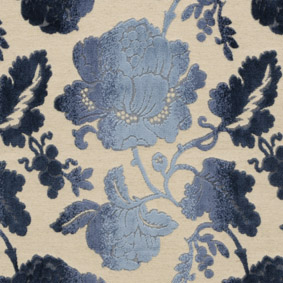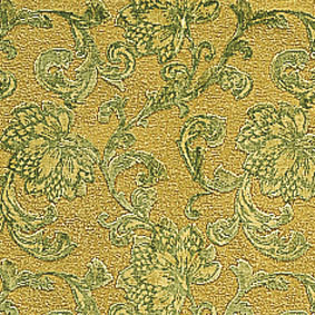 ゴールドを基調としたエレガントなベース生地に、柔らかな肌触りのパイルを織り込んだ贅沢なテクスチャーのジャガードベルベット。大柄で伸びやかな花柄が描かれたラグジュアリーなファブリックです。