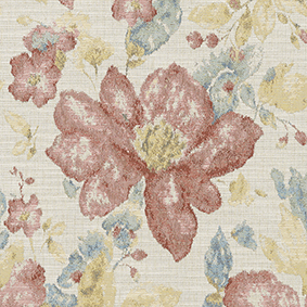 アイボリーを基調としたナチュラルなベース生地に、グラデーションカラーのパイル地で花模様を描きました。ゆるやかに変化するカラーリングと、ジャガードベルベットの上品な光沢を組み合わせた美しいファブリックです。