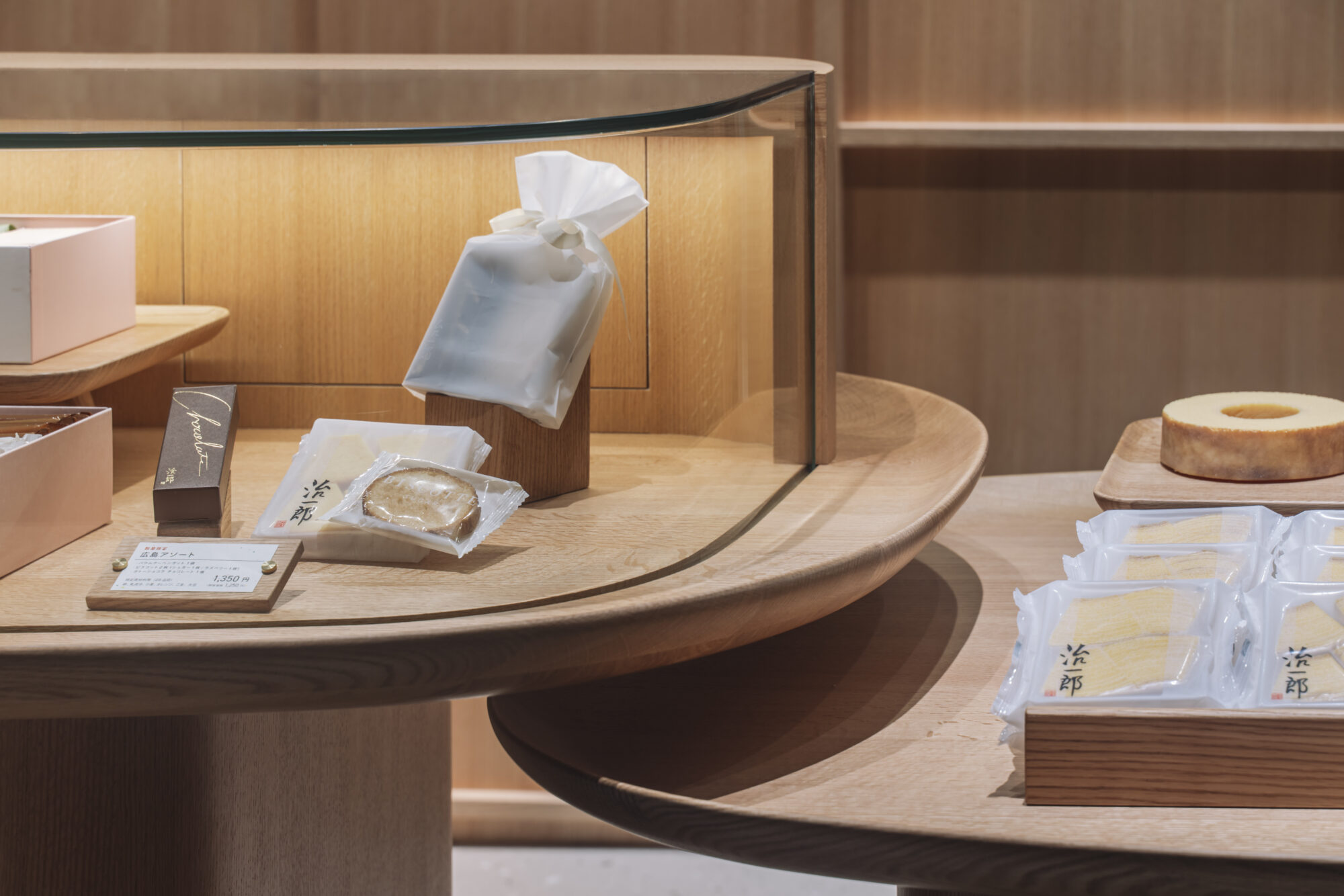 治一郎は「地域に根付いたデザインをすること」を軸に店舗展開を行っており、広島の地でものづくりに取り組む企業とのコラボレーションとして、店舗の象徴となる木製什器の製作をマルニ木工が担当しました。
