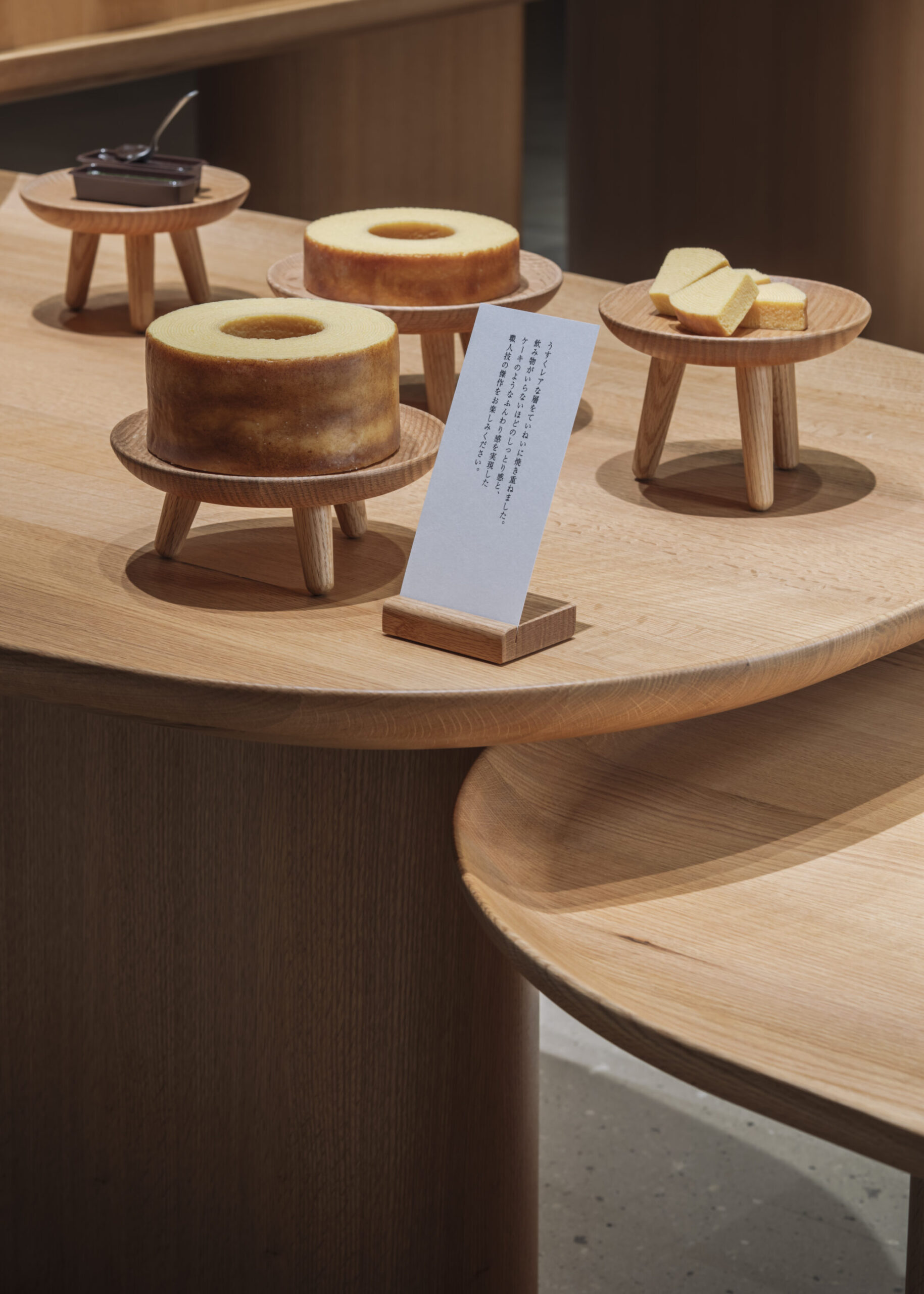 ディスプレイ什器に加え、バウムクーヘン用の台、カードスタンドなども製作