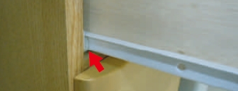 白いレールがついているスライドレールです。 矢印の位置にローラーが付いています。