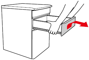 引出しが止まるまで引き出してください。中箱の側面をしっかり持ち、少し上に持ち上げながら引き抜いてください。
