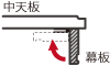 幕板がついている中天板は、パッチン錠のフックに注意しながら、矢印の向きに幕板を折りたたんでください。