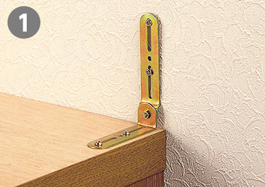 転倒防止補助金具壁面と家具を固定し転倒防止に効果的です。 |