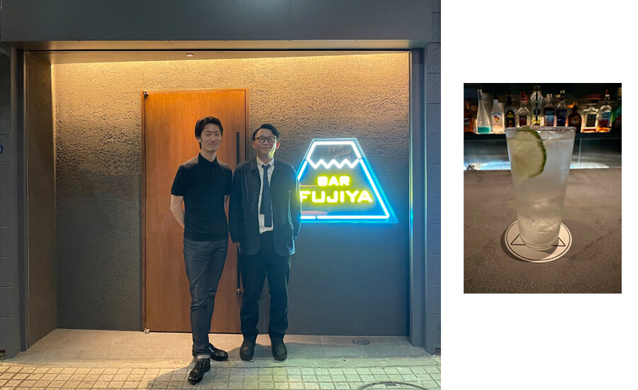 左:studio sima 島田さん、右:BAR FUJIYA オーナー 藤木さん納品先 BAR FUJIYA