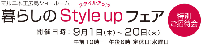 広島ショールーム「暮らしの Style Up フェア」9/1(木)~20(火)