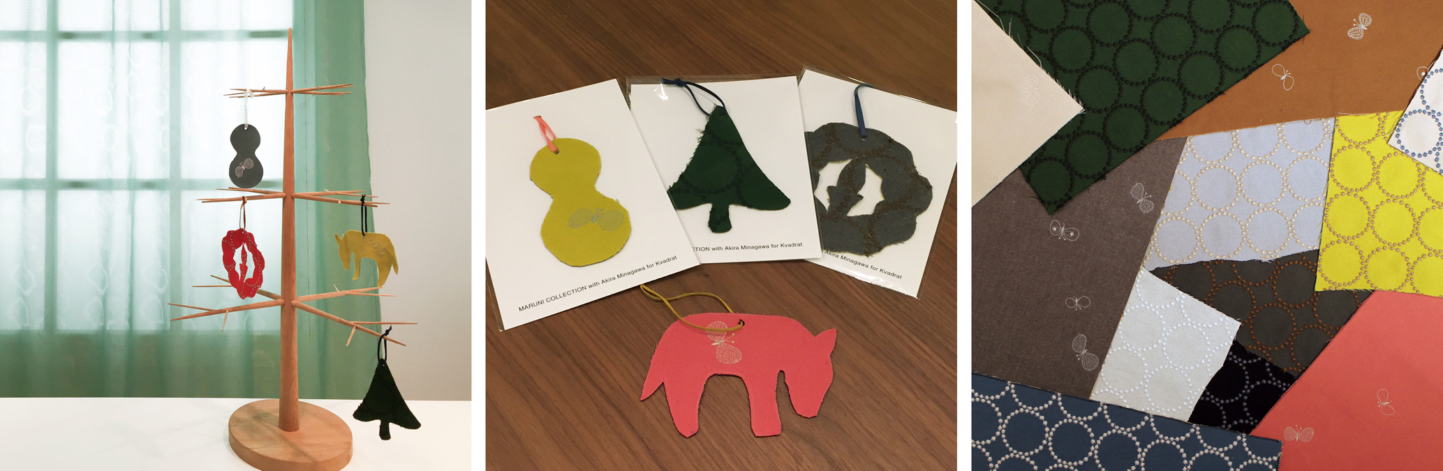 先月開催いたしました、minä perhonenのインテリアテキスタイル“dop”の余り布を用いたクリスマスオーナメントを作るワークショップが大変ご好評をいただきましたので、会期を延長いたします。皆川 明氏がデザインしたオーナメントの型は全部で4種類。リボンも可愛らしいものを新たに取り揃えております。maruni tokyo 営業中は常時開催いたしますので、どなたでも気軽にお楽しみいただけます。好きな布とお気に入りの型を選んで、クリスマスプレゼントにもぜひご活用ください。