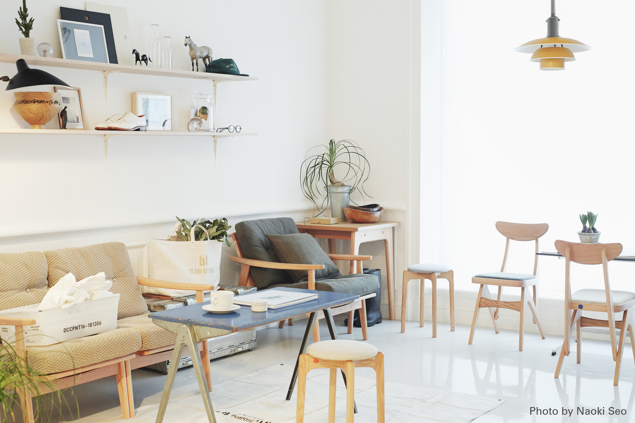 会期中の見どころの一つは、インテリアスタイリストの作原文子さんによる、新作を使った多彩なスタイリングです。新作のチェアやキャビネットが、作原さんセレクトの小物と絶妙なバランスで展示されているインパクトのあるディスプレイ。一人暮らしの部屋、ラウンジスペース、そしてカフェスペースには、主に北欧を中心とした60年代のアイテムたちと、今年復刻したデルタチェアや定番のオークフレームチェアがもたらす心地よい空間。小物との組み合わせなど、インテリアや新生活のヒントになるスタイリングばかりです。この機会にぜひご来場ください。