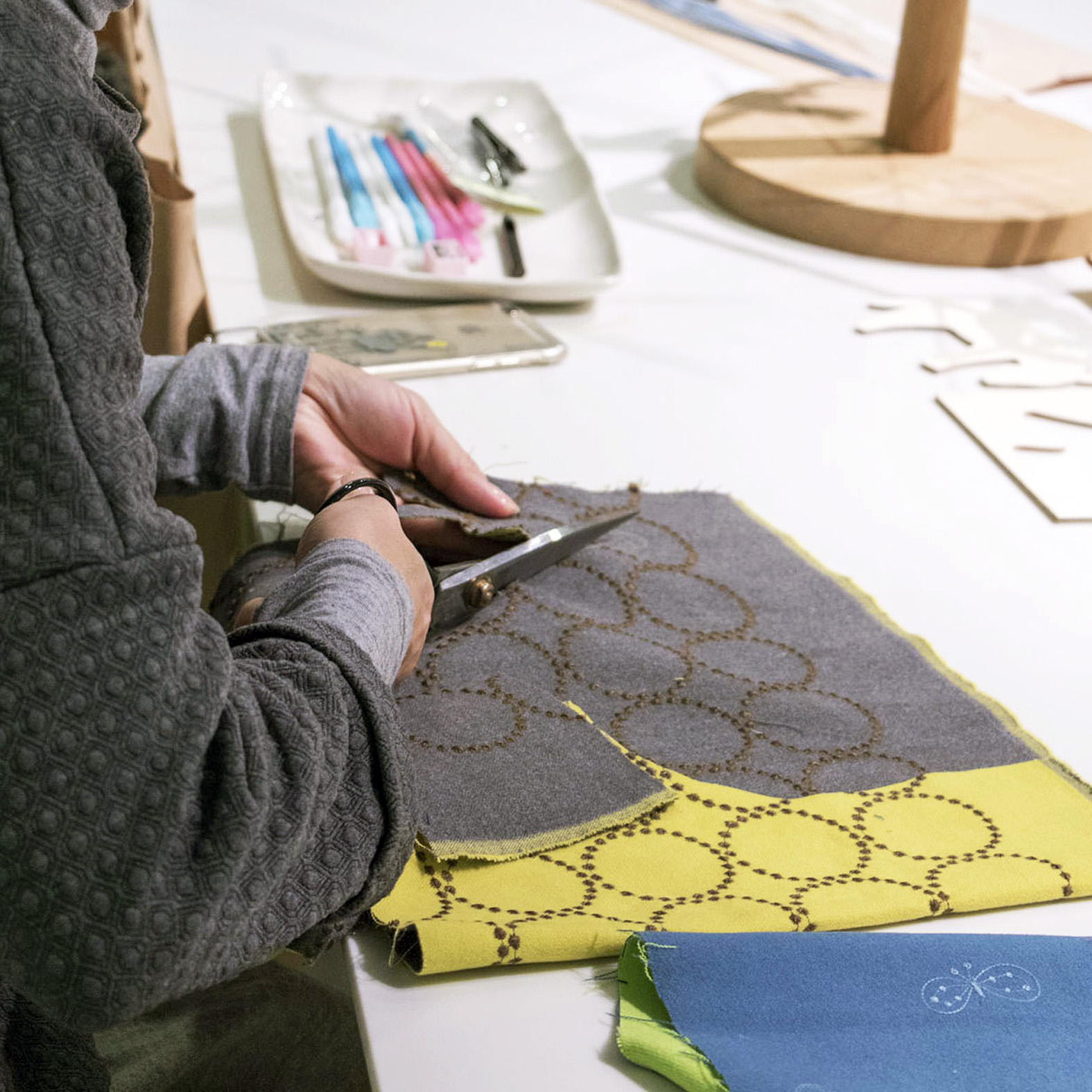 ファッションブランドminä perhonen のインテリアテキスタイル“dop” の余り布を用いたワークショップは期間中常時開催しております。minä perhonen のデザイナー、皆川 明氏がデザインしたオーナメントの型は全部で4 種類。 お好きな生地とお気に入りの型を選んで、クリスマスプレゼントにもぜひご活用ください。