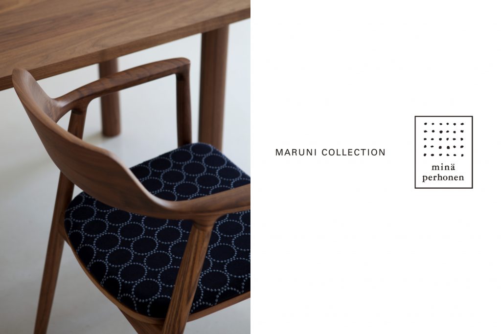 ファッションブランドの minä perhonenが開発した経年変化を楽しめるインテリアファブリック"dop"を張ったMARUNI COLLECTIONに合わせて、Kvadratから発表されたminä perhonenの皆川 明がデザインしたファブリックを張ったアイテムやクッションも期間限定で展開いたします。