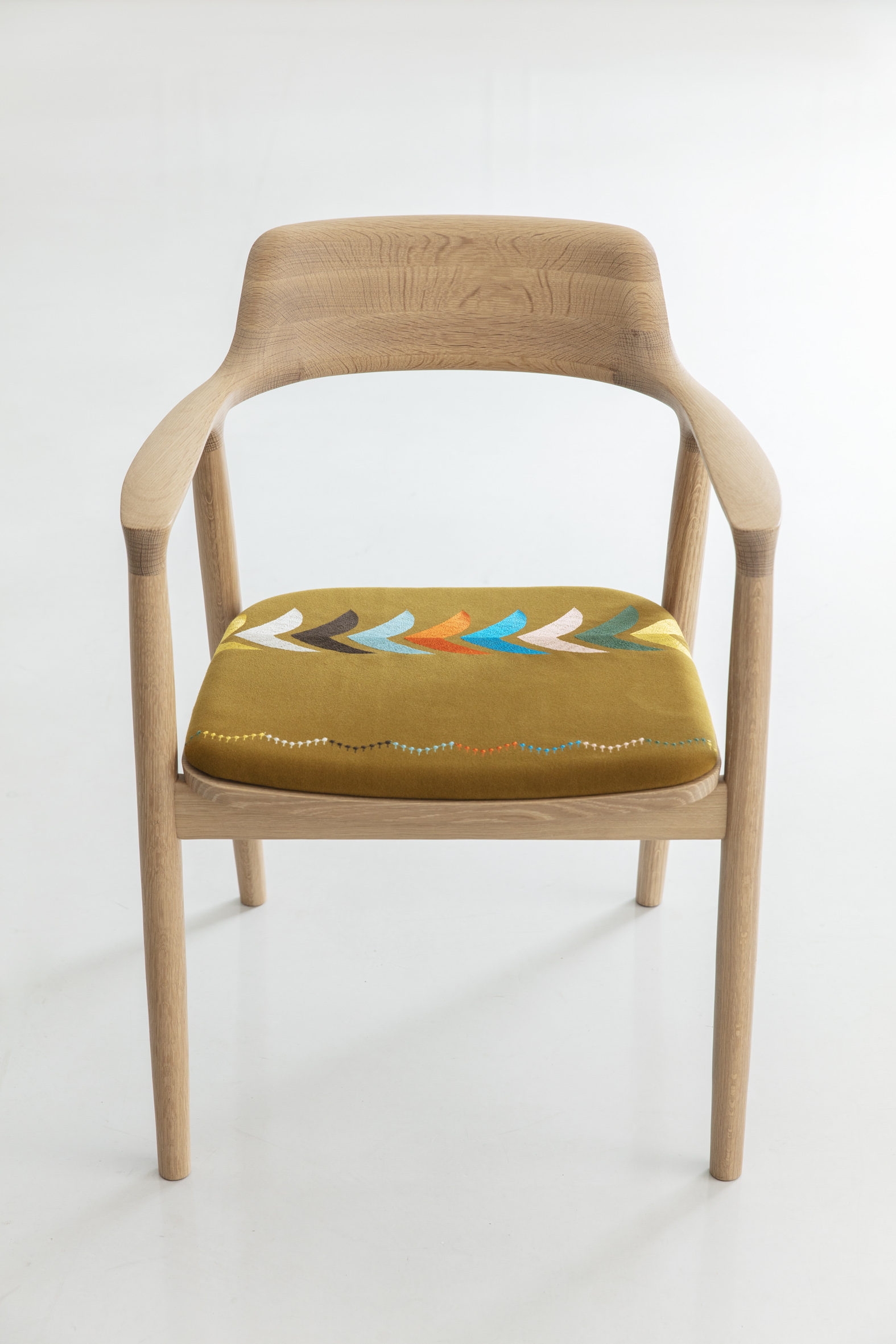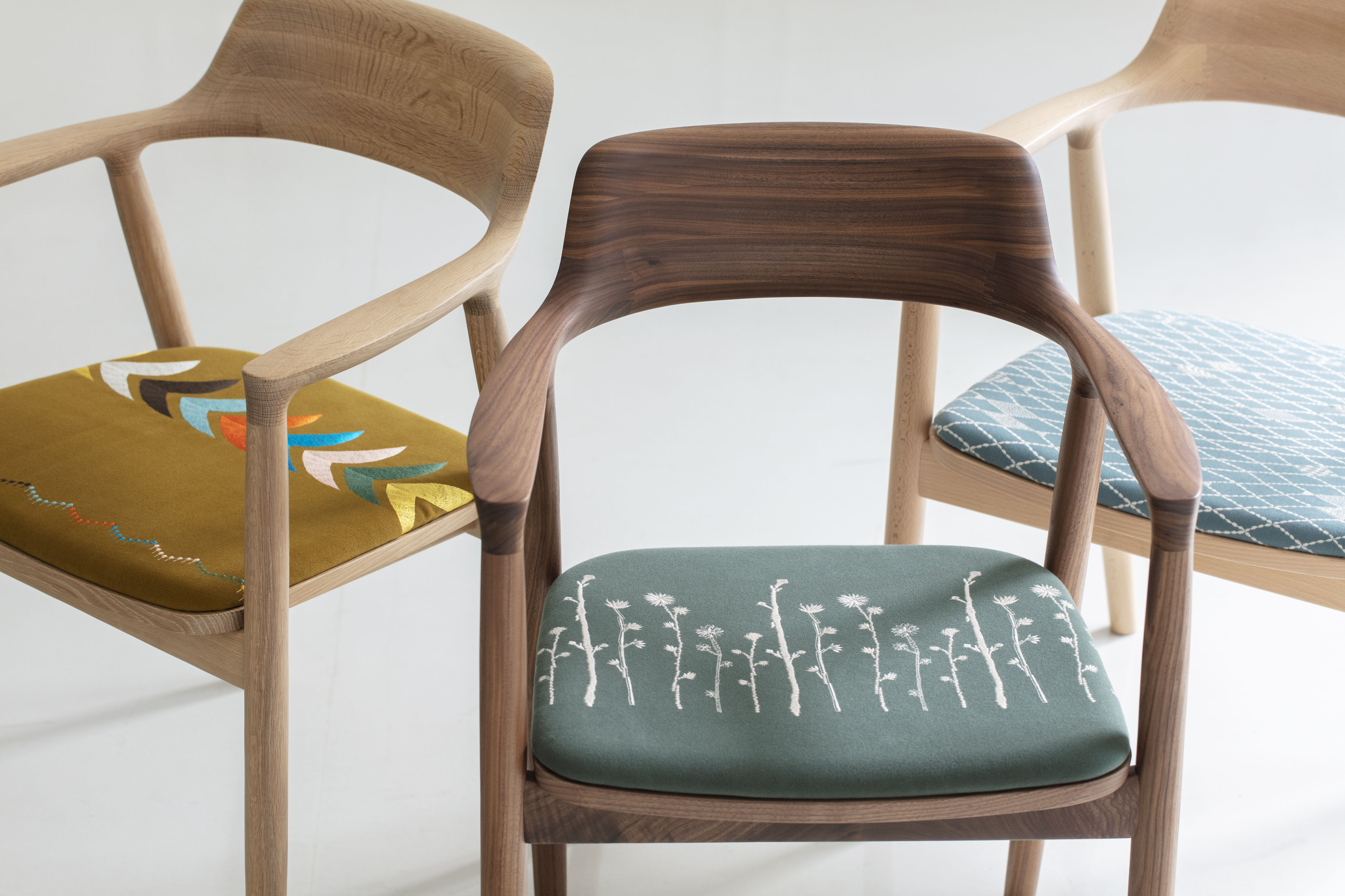 minä perhonenのアーカイブから3種のテキスタイルを選び、dopに刺繍を施した特別なHIROSHIMAアームチェアを数量限定にて販売いたします。