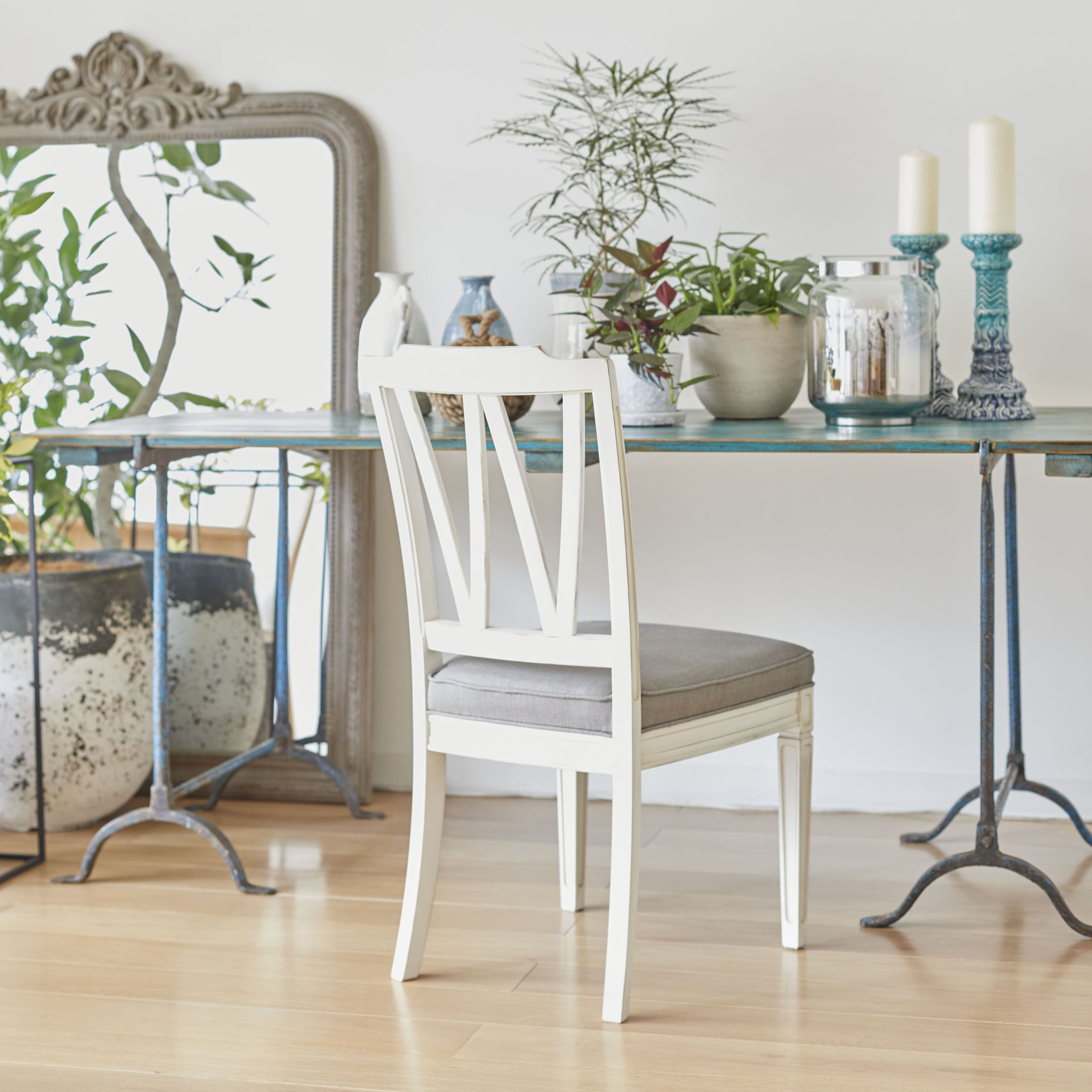 atelierでは、オーク材を使い天然木のもつ個性と力強さ、削り込まれた優美な造形を表現、またビーチ材を用いて椅子一点ずつ何度も工程を重ねることによる味わい深いヴィンテージ風の塗色を採用しました。