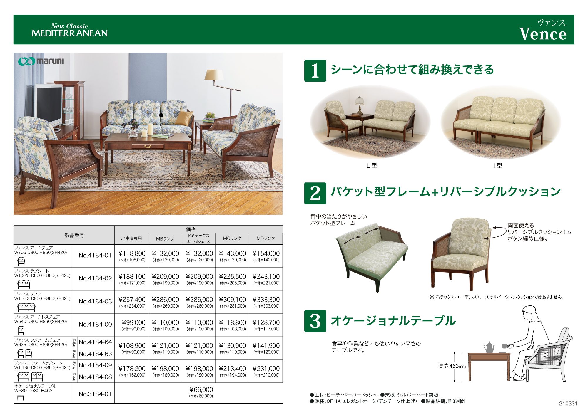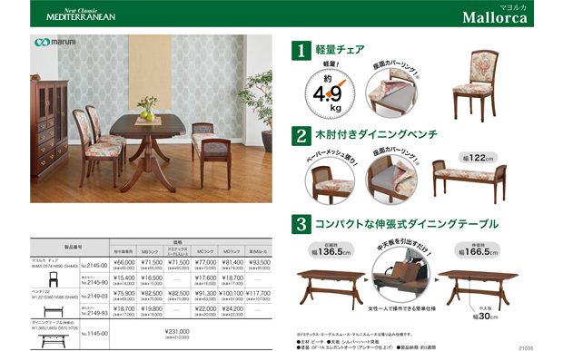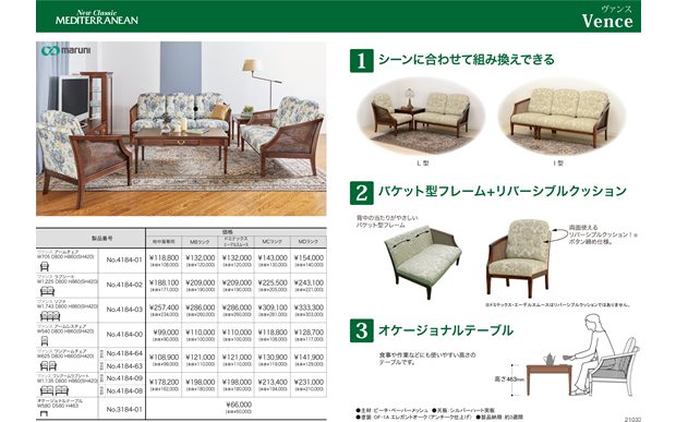 地中海シリーズでは、コンパクトでありながらハイバックで座り心地のよいソファをはじめ、使い勝手の良さを追求したダイニングアイテム、華やかなファブリックなどの新作をお披露目いたします。アトリエシリーズでは、自由に組み合わせることができる人気のソファMONET(モネ)にバリエーションが追加となります。また、コンソールテーブルと新ファブリックとともに生活シーンを彩ります。
